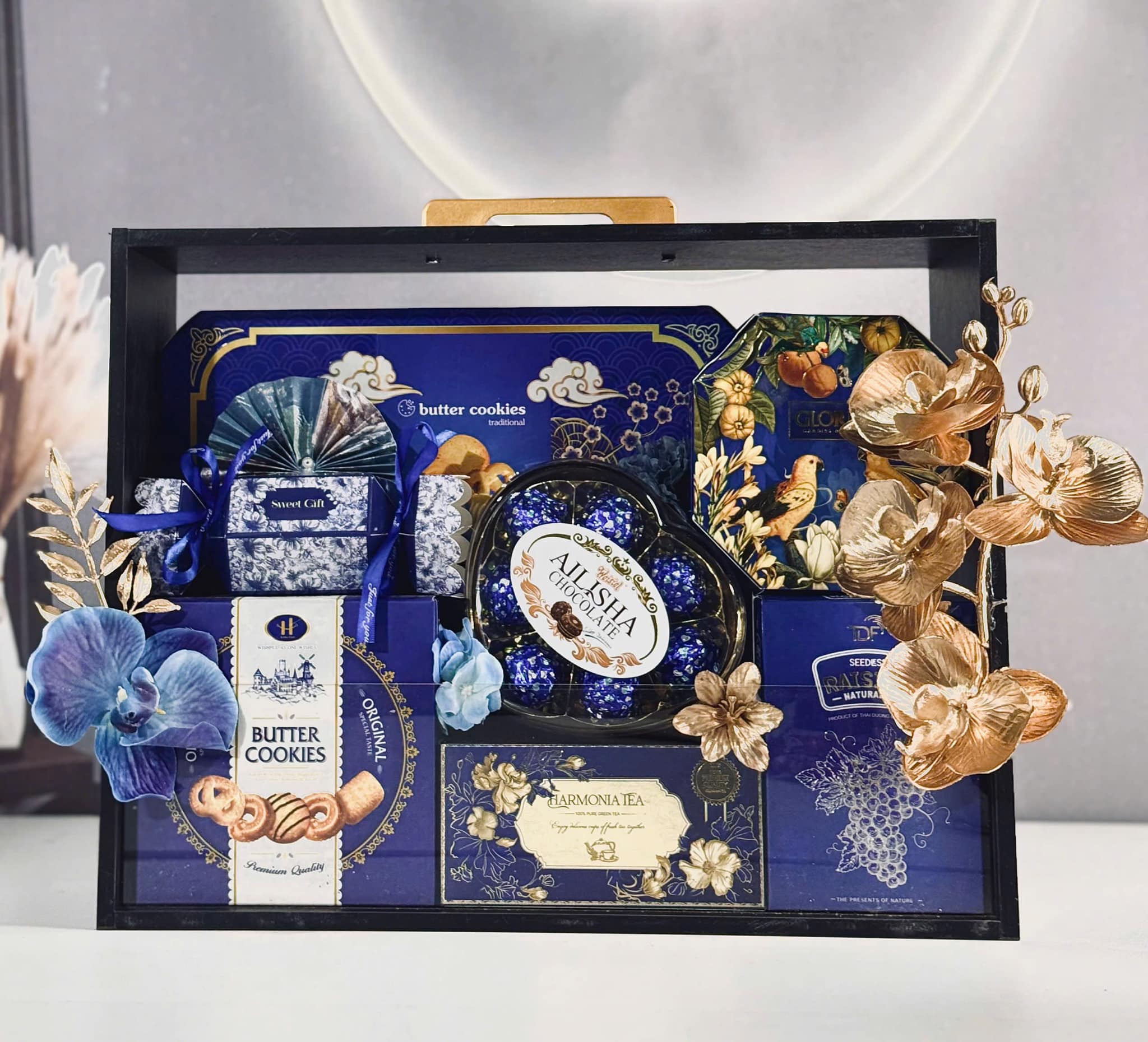 Set quà cao cấp: Hộp quà gỗ, hộp da sang trọng, sản phẩm nhập khẩu.